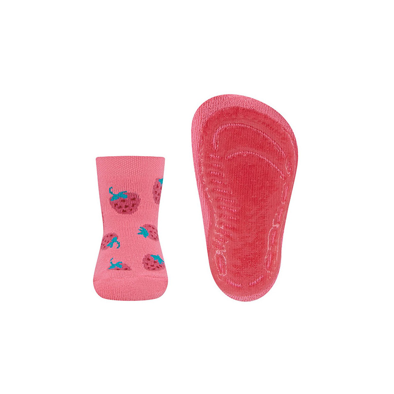 Diese Stoppersocken mit niedlichem Erdbeermotiv und kurzem Schaft eignen sich ideal als Hausschuhersatz.